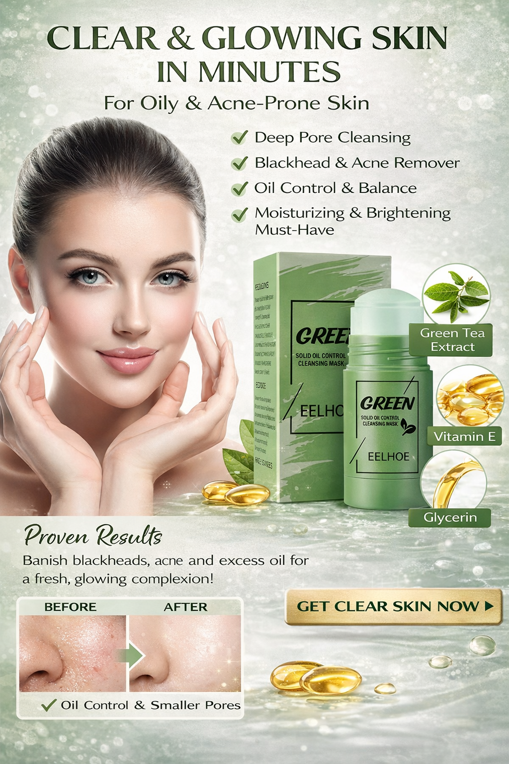 This Green Tea Solid Cleansing Mask Stick is your all-in-one solution for clearer, smoother, healthier-looking skin.