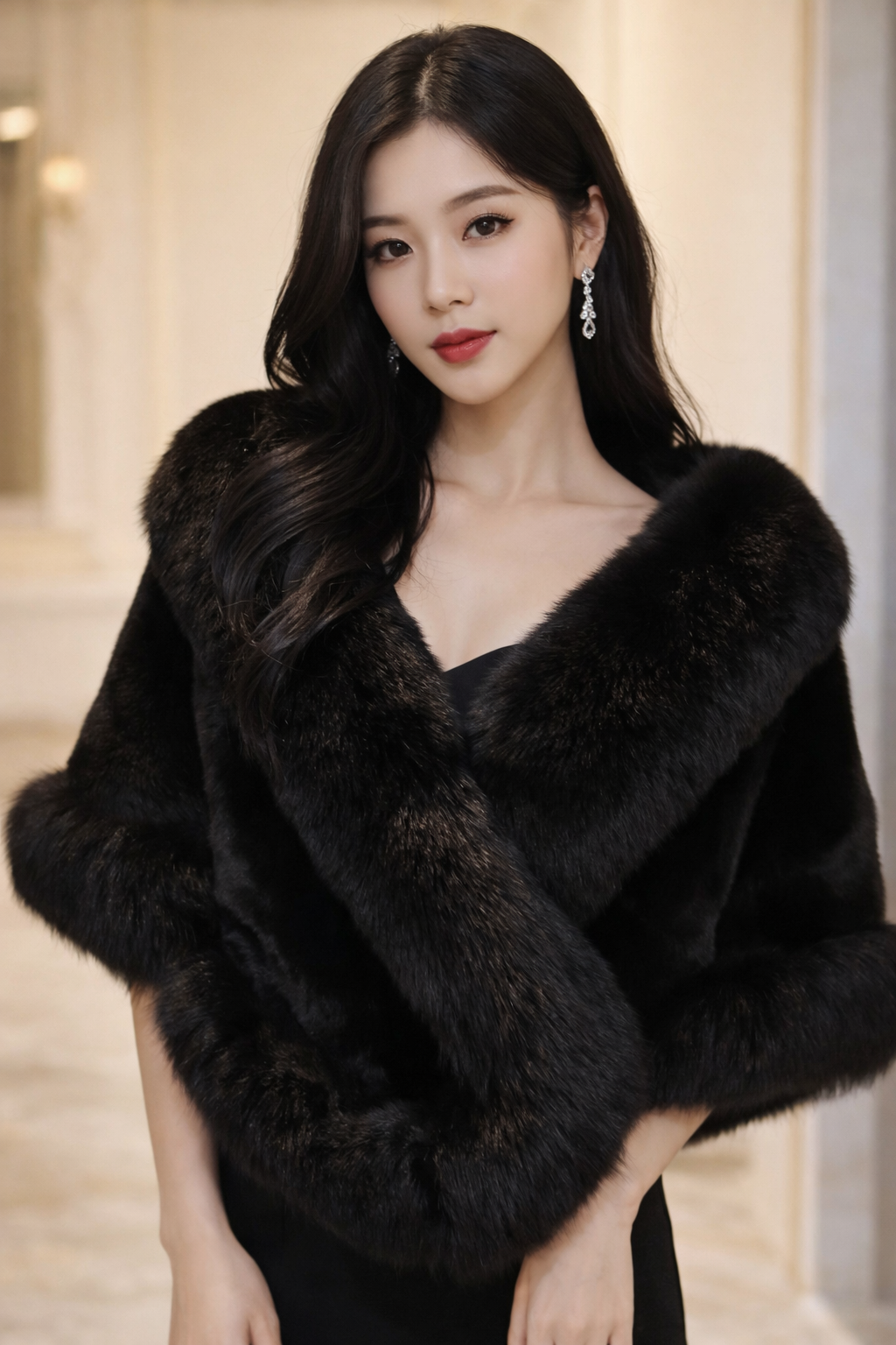 Embrace winter elegance with this luxurious faux fur shawl jacket that envelops you in warmth and style, perfect for any occasion from casual to glamorous.